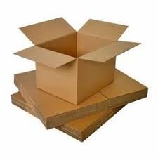Rigid containers, usually made of cardboard or corrugated fiberboard, used for packaging and shipping.